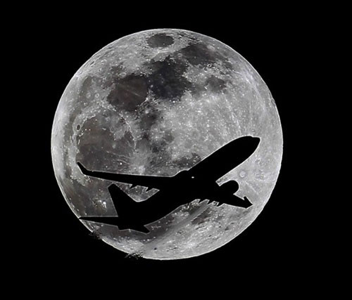 Một chiếc máy bay đi qua bầu trời ở California, Mỹ 1 giờ trước nguyệt thực. Ảnh: AP