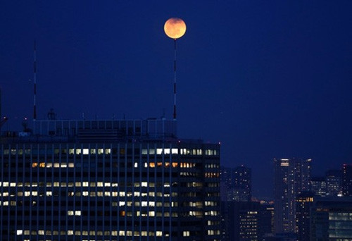 "Trăng máu" giống như quả bóng bay trên bầu trời Tokyo, Nhật Bản. Ảnh: Reuters