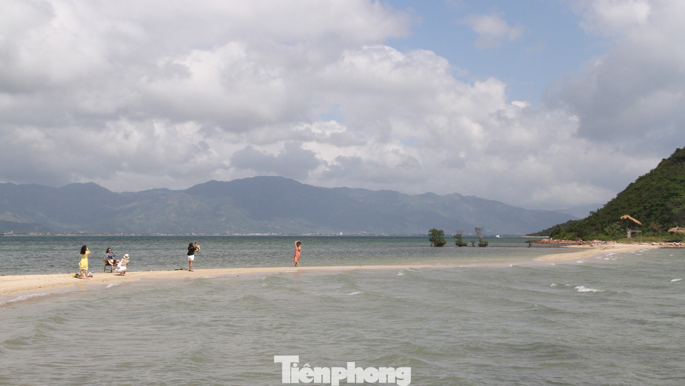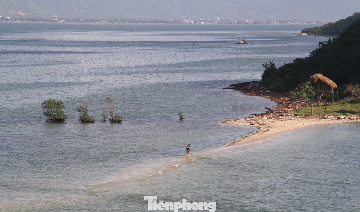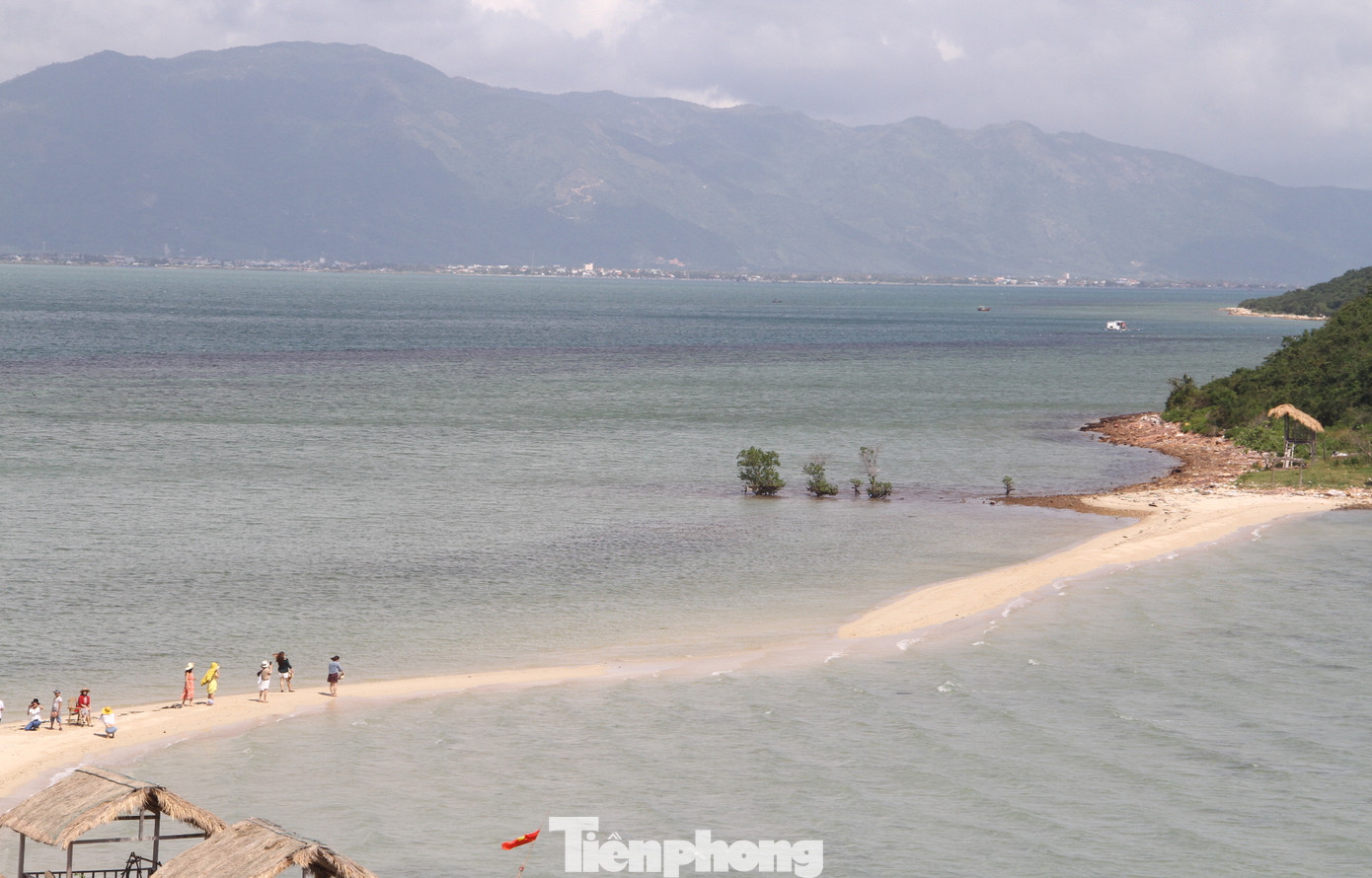 Khi thủy triều hạ xuống, con đường uốn lượn, rộng khoảng 1m và nằm sâu dưới mặt nước biển trong xanh chưa đến 0,5m. Nhìn từ xa, lớp cát trắng mịn hiện lên giữa biển như một cây cầu tuyệt đẹp nối đến đảo Điệp Sơn xinh đẹp.