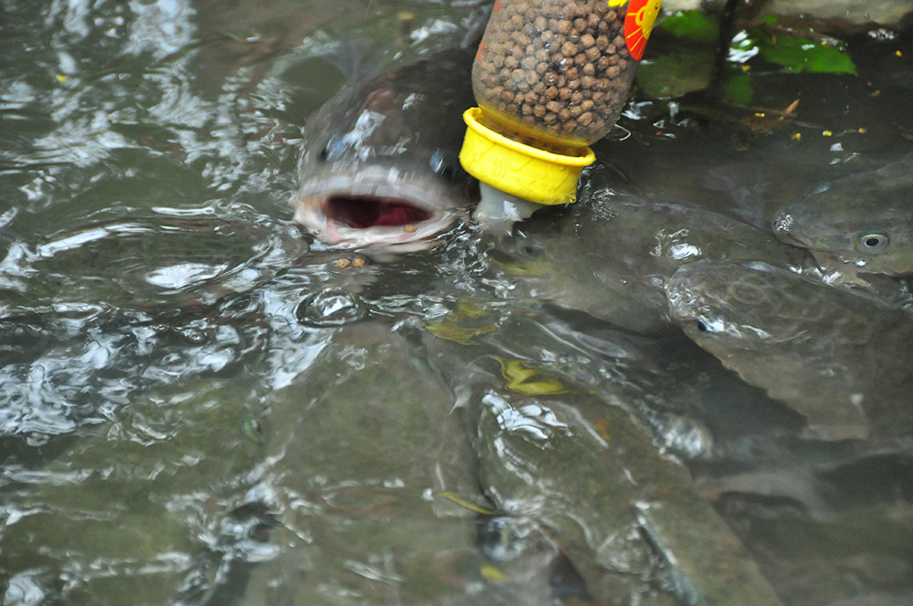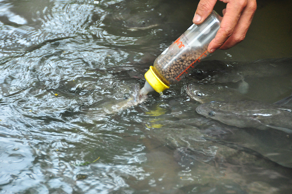 Bằng kỹ thuật của riêng và tình yêu thương dành cho đàn cá, anh đã dẫn dụ cá gom lại. Tập rất lâu và khi cá bú được bằng bình cũng là dịp để anh vuốt ve, bưng bê từng con cá trong tay mình. Cá vừa bú bình vừa thân mật trong tay của anh.