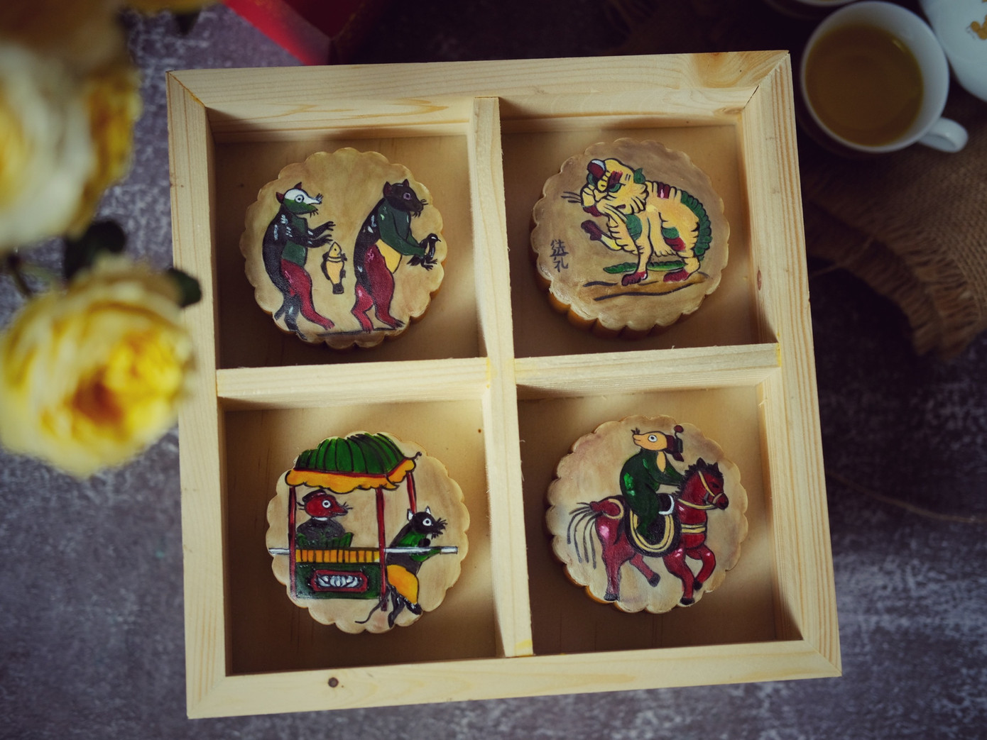 Những năm qua, Dương chăm chút vẽ tranh lên những chiếc bánh đầy sống động. Gần đây, cô tình cờ xem qua những tác phẩm điêu khắc gỗ trên mạng. Dương nhận thấy, màu sắc vân gỗ và màu vỏ bánh Trung Thu có sự tương đồng nên quyết định sáng tạo mẫu bánh đặc biệt cho mùa Trung Thu 2023.