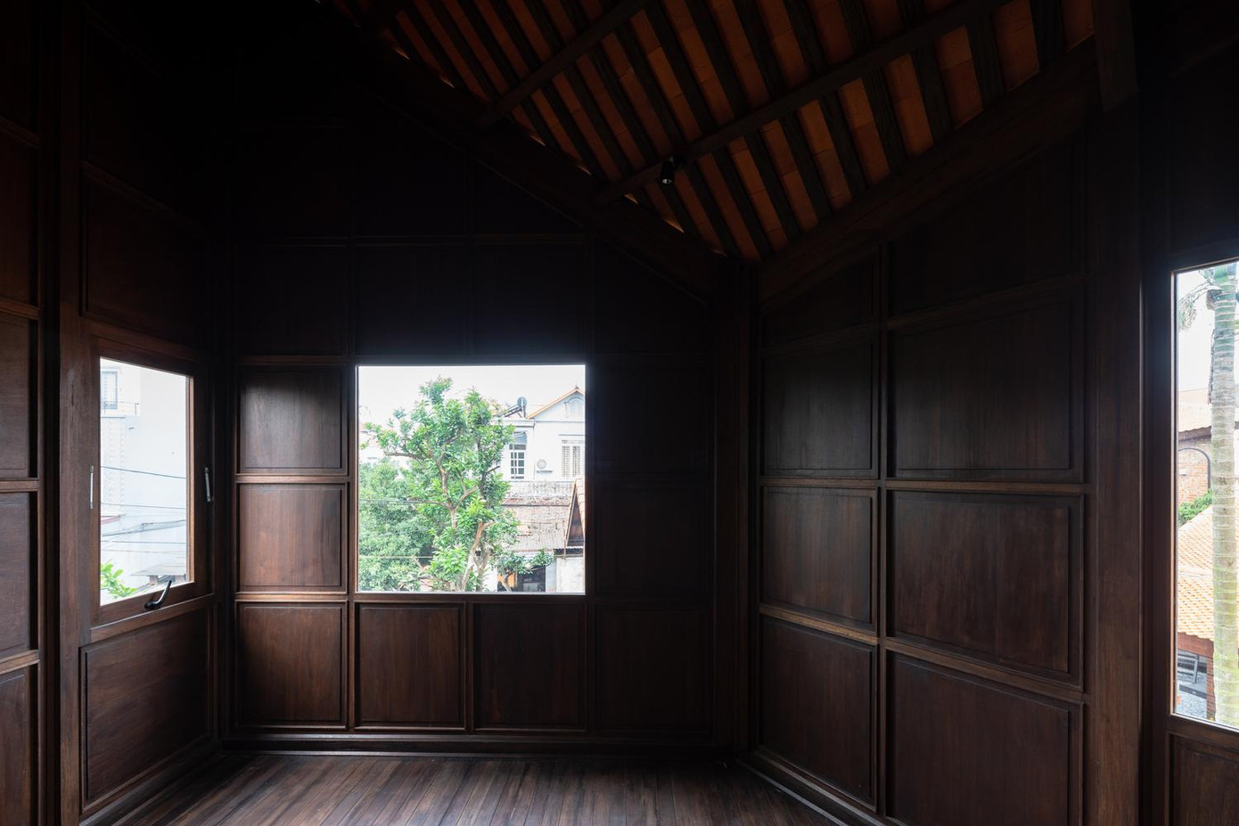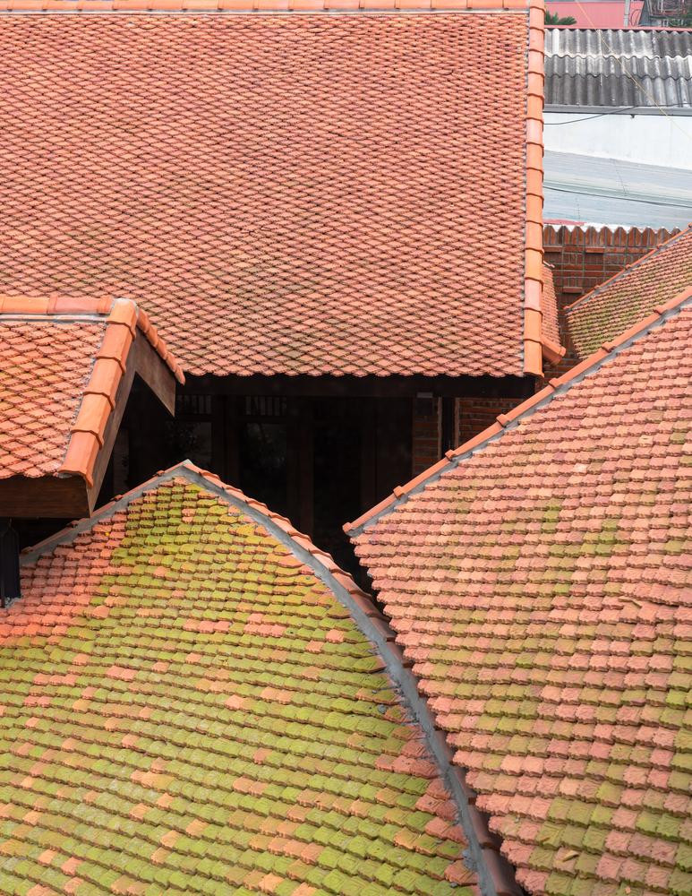 | Mái nhà được thiết kế dạng mái dốc, tách biệt và vênh về các hướng nhằm tạo sự sinh động cho không gian. |