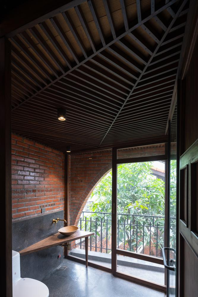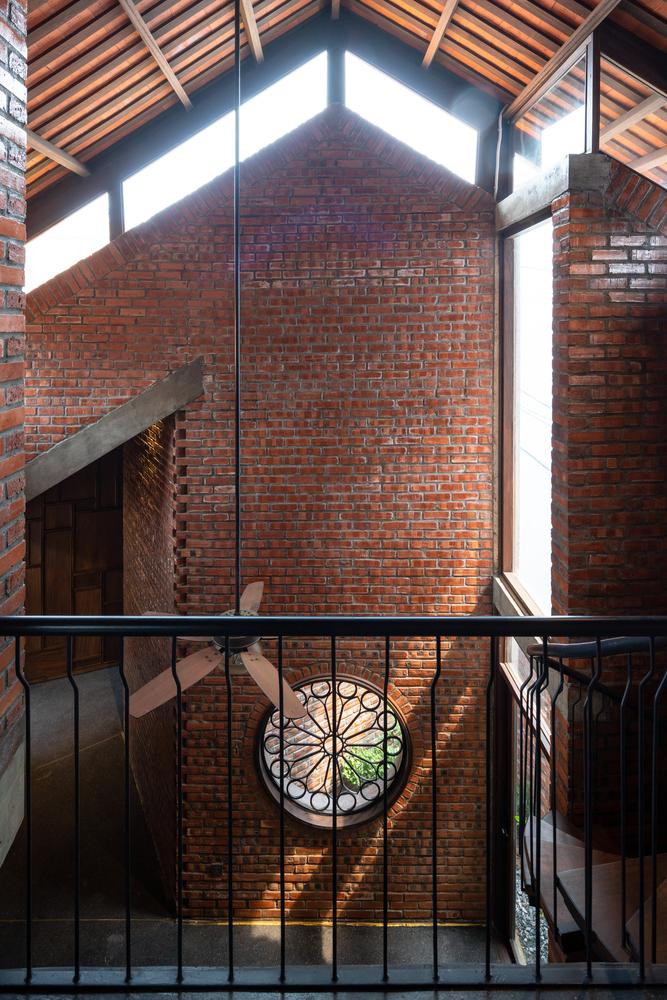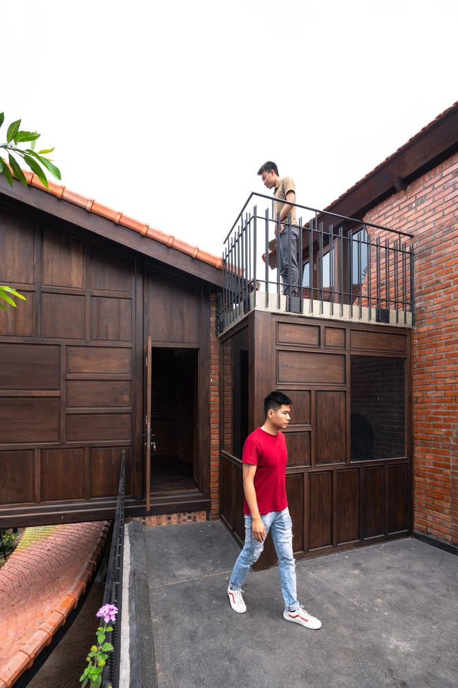 | Ngôi nhà sử dụng các vật liệu truyền thống quen thuộc như gỗ, ngói đỏ, gạch trần tạo cảm giác ấm áp, thân thiện với thiên nhiên. |