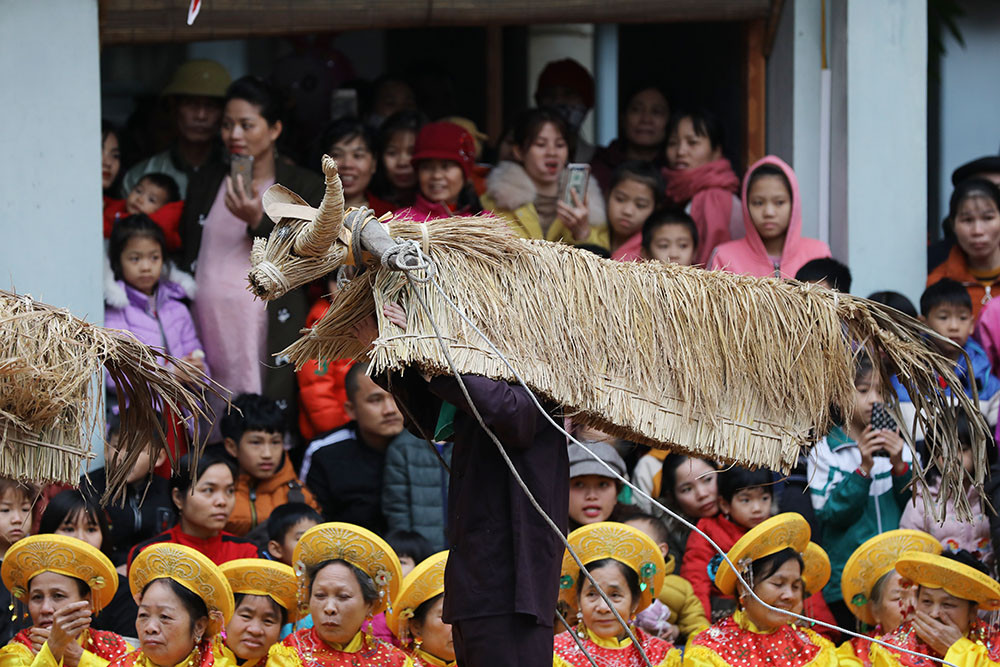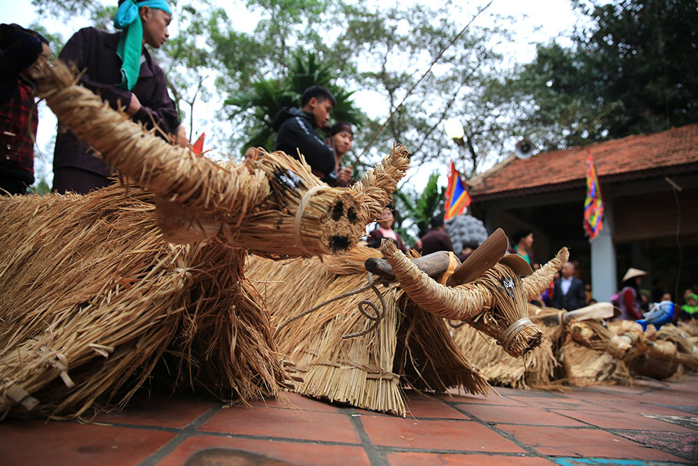 Những con trâu con bò cày bừa tại lễ hội thực chất là vật tượng trưng được tết bằng rơm rạ từ ruộng lúa nếp thơm được chọn từ vụ trước.