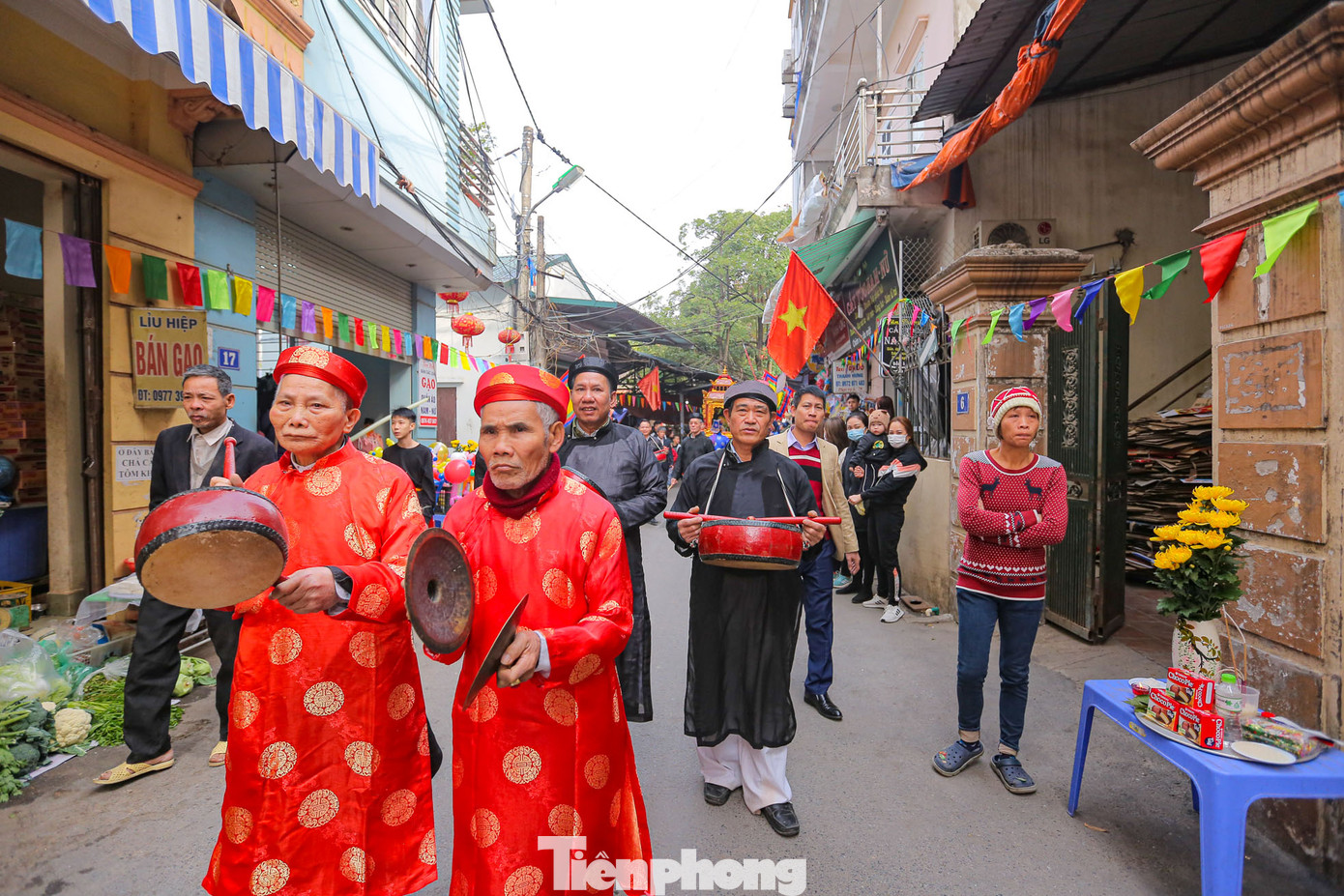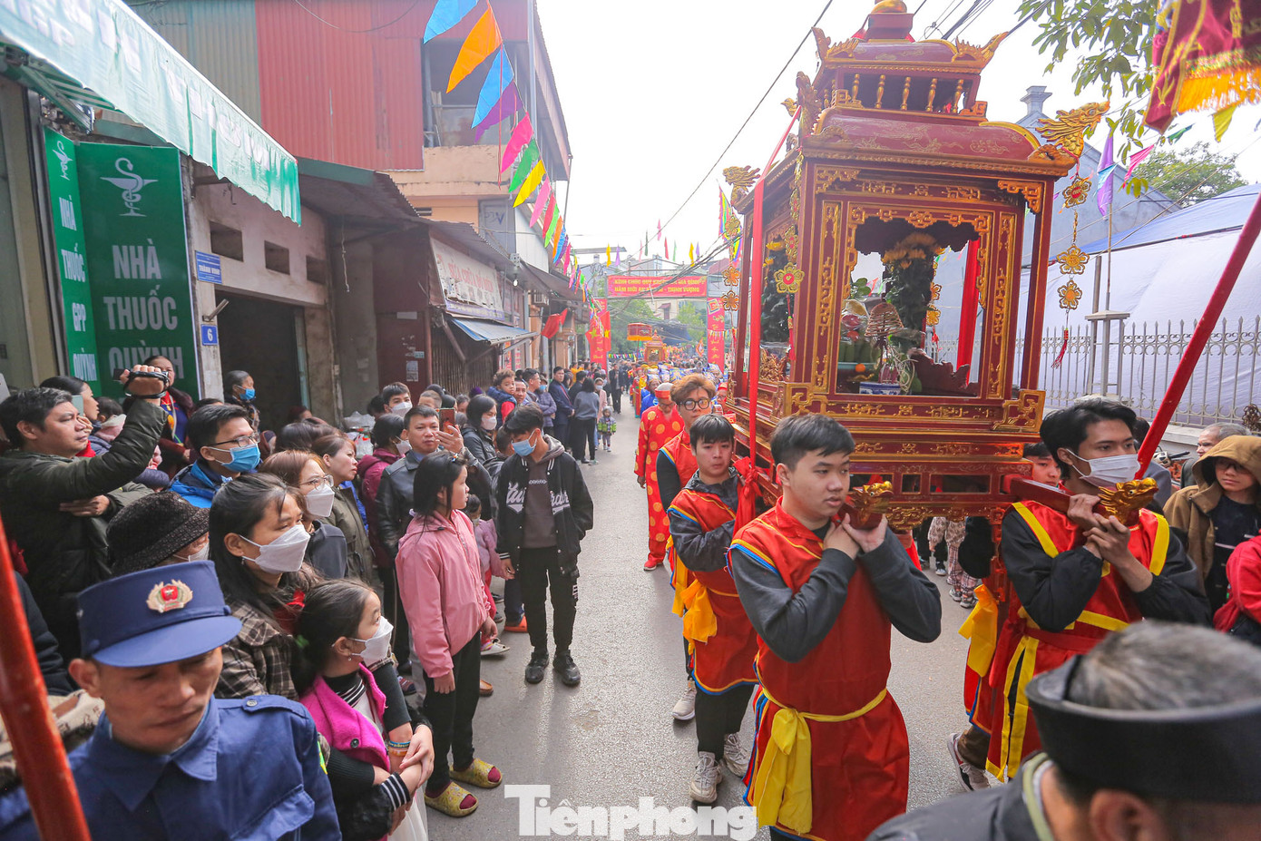 | Đông đảo người dân trong làng cùng du khách thập phương cùng tham gia vào đoàn rước khiến các con ngõ trong làng Tây Mỗ chật kín người. |