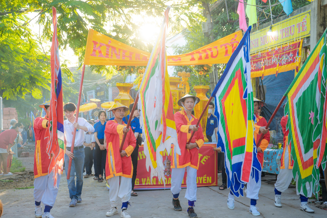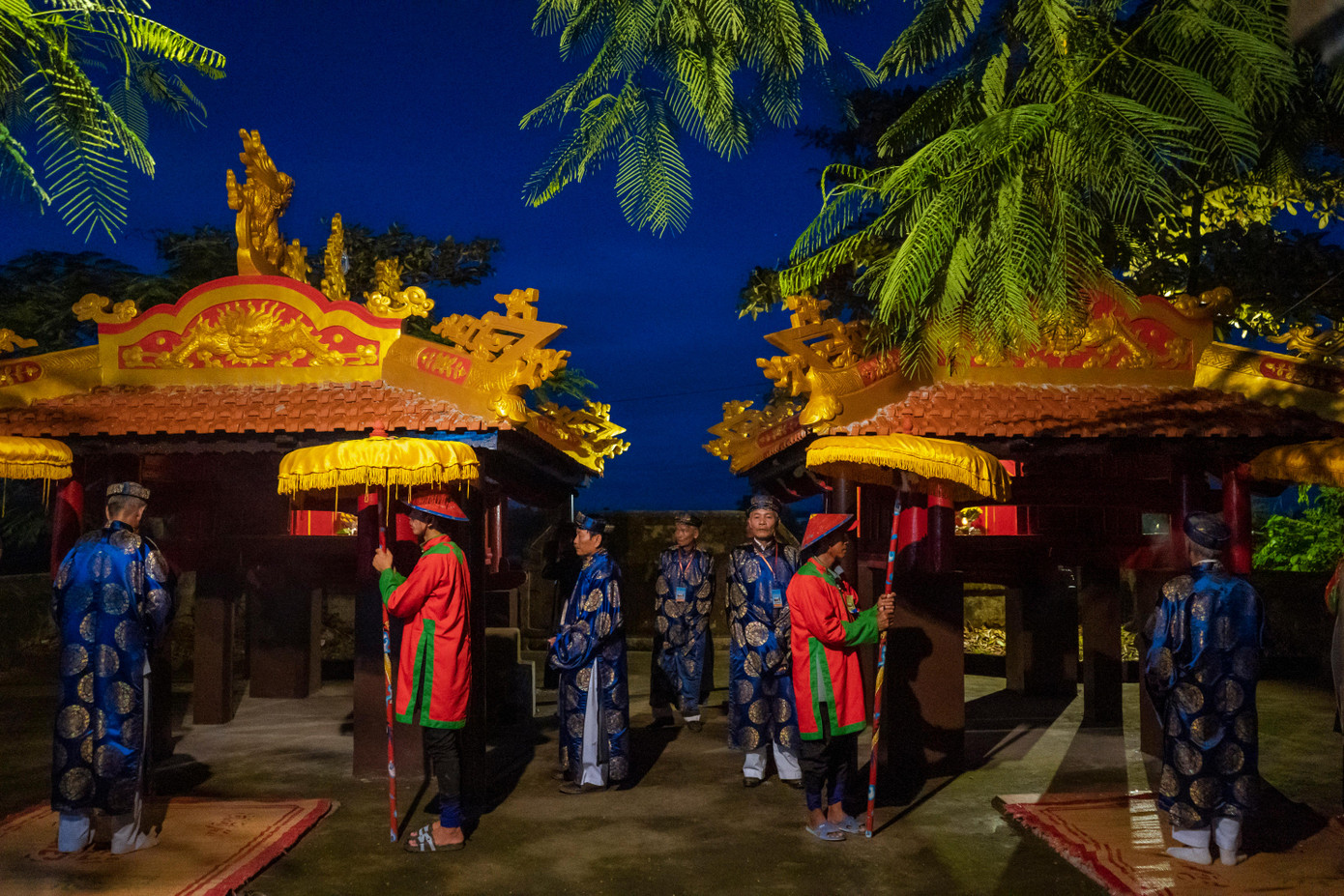 | Từ rạng sáng, các nghi thức, lễ rước cung nghinh bài vị của các vị khai canh diễn ra trang trọng. Ảnh: Đình Hoàng |