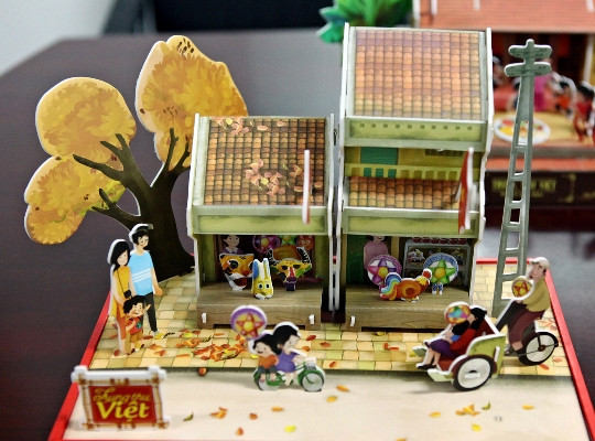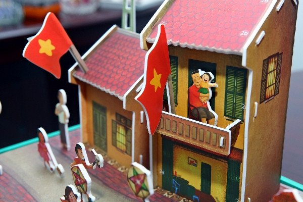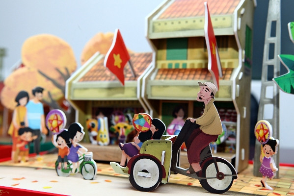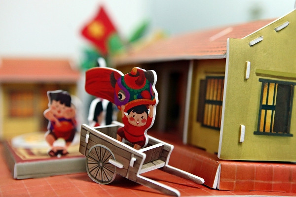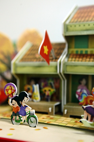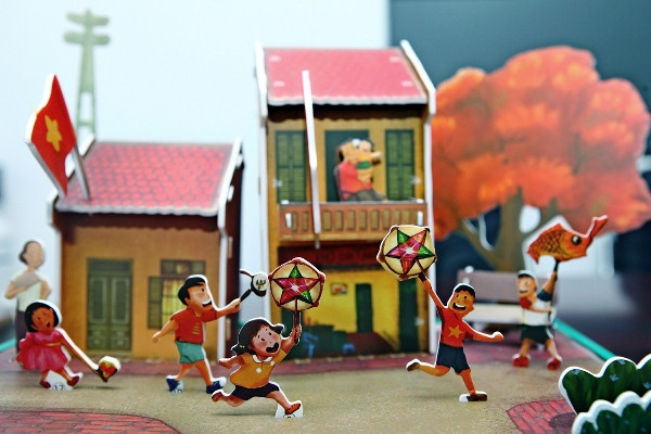 Mô hình “Rước đèn ông sao” tái hiện lại không gian những ngôi nhà cổ của Hà Nội xưa.