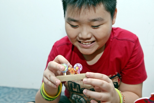 Bé gái đang lắp ráp mô hình “Phá cỗ đêm rằm”.
