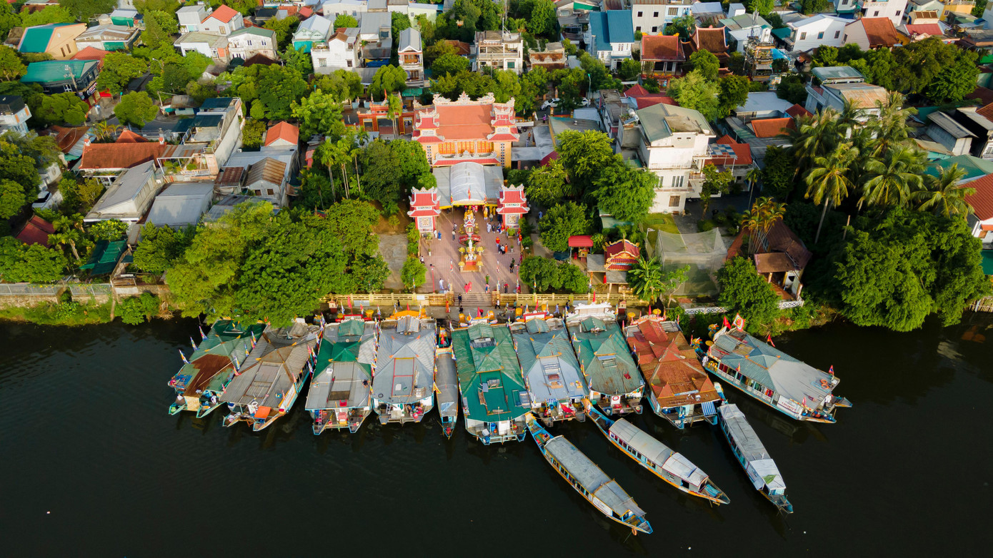 Một trong những nét đặc sắc nhất của lễ hội điện Huệ Nam là nghi thức rước Thánh Mẫu bằng thuyền trên sông Hương.