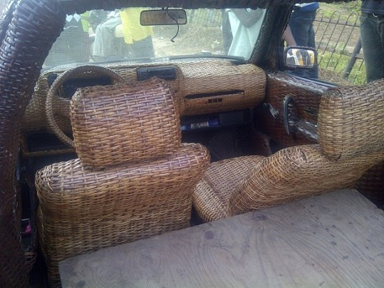 Với kinh nghiệm 20 năm đan sợi, ông biết loại sợi này có thể uốn dẻo và dùng để bọc bên ngoài xe rất bền. Ông đã bọc toàn bộ sợi mây từ ngoài vào trong, từ vô lăng đến ghế ngồi.