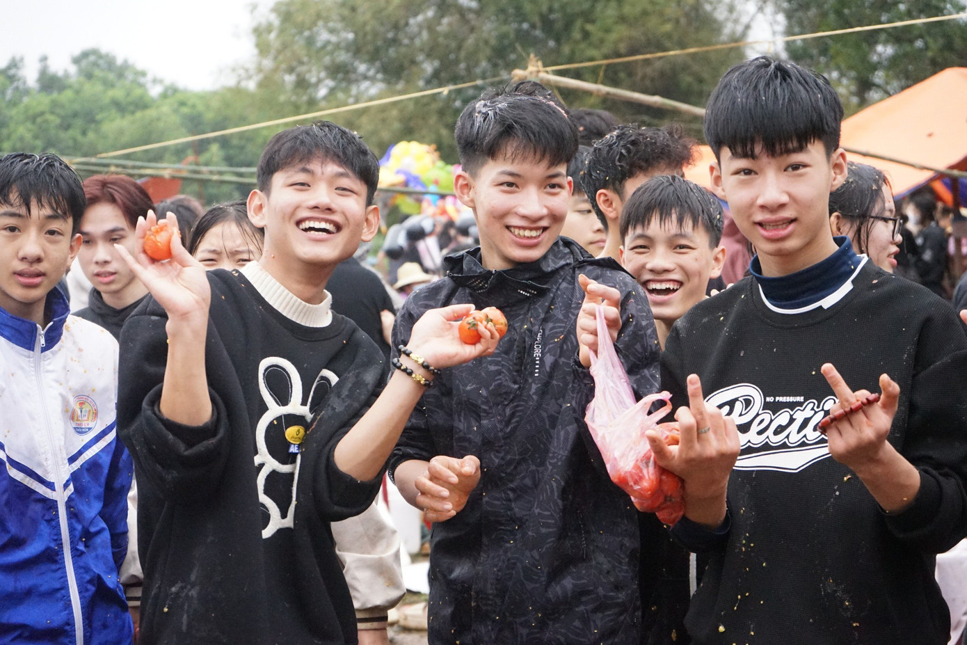 | Các bạn trẻ ném cà chua vào người nhau mong được may mắn. |