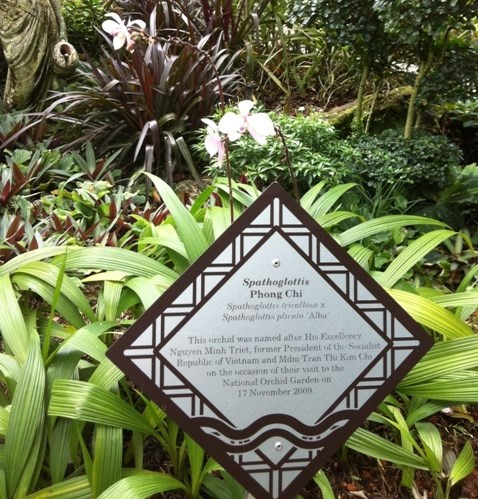 Là một trong những nước dẫn đầu thế giới về lai tạo, nhân giống và bảo tồn hoa lan, Singapore đã tận dụng thành quả này để thể hiện thiện chí, thắt chặt quan hệ ngoại giao với các nước; đồng thời quảng bá hoa lan. Hàng chục năm qua, những nguyên thủ có chuyến thăm chính thức đến Singapore được mời đến thăm vườn và đặt tên họ cho loài phong lan đặc sắc mới được lai tạo.
