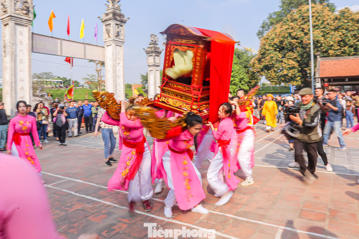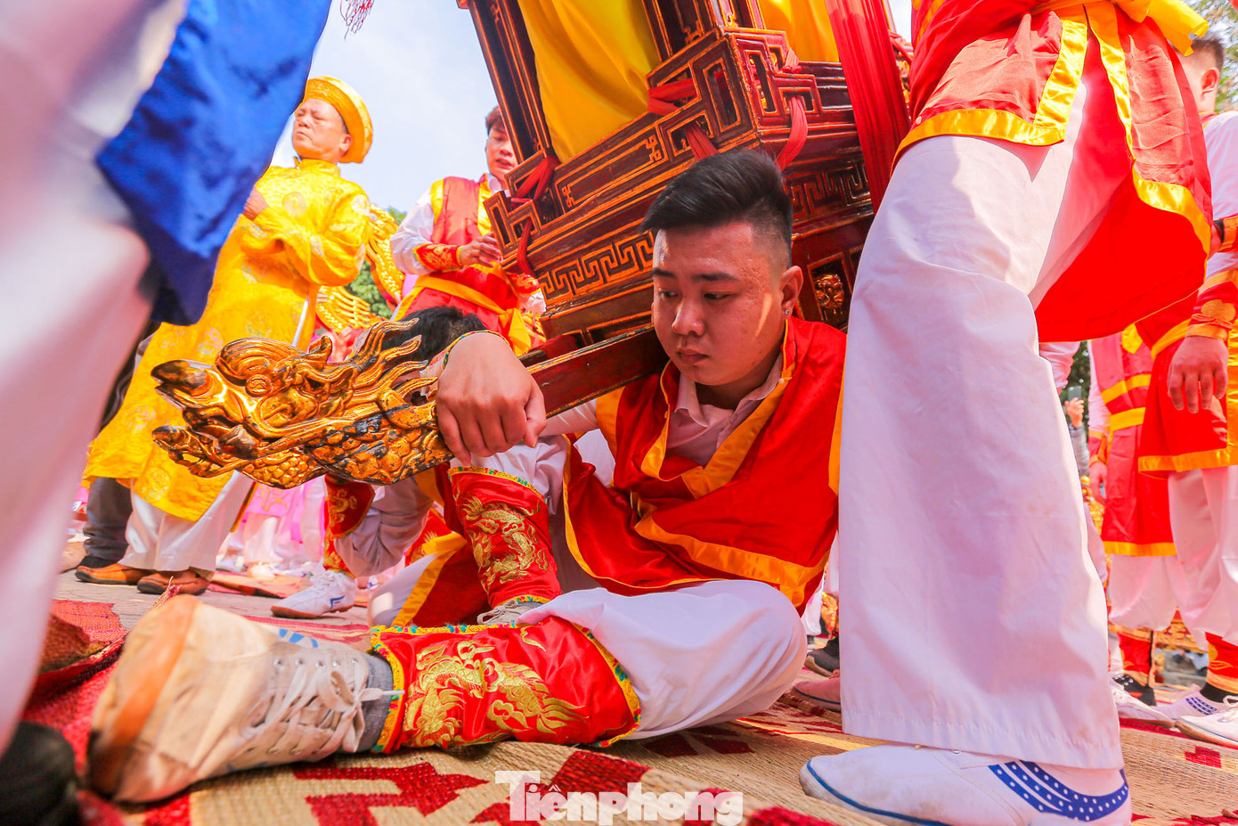 Quãng đường rước "các ngài" từ đình làng Thổ Khối ra bến sông lấy nước rồi rước ngược về đình chỉ khoảng 2km, nhưng đoàn rước phải mất tới hơn 2 giờ đồng hồ mới hoàn thành bởi cứ đi một đoạn ngắn kiệu lại xoay hoặc chạy ngược. Trong trang phục truyền thống, những cô gái chân yếu tay mềm hay cả những chàng trai khỏe mạnh đã phải rất vất vả mới có thể giữ thăng bằng khi kiệu xoay theo một lộ trình đầy ngẫu hứng và không hề được báo trước.