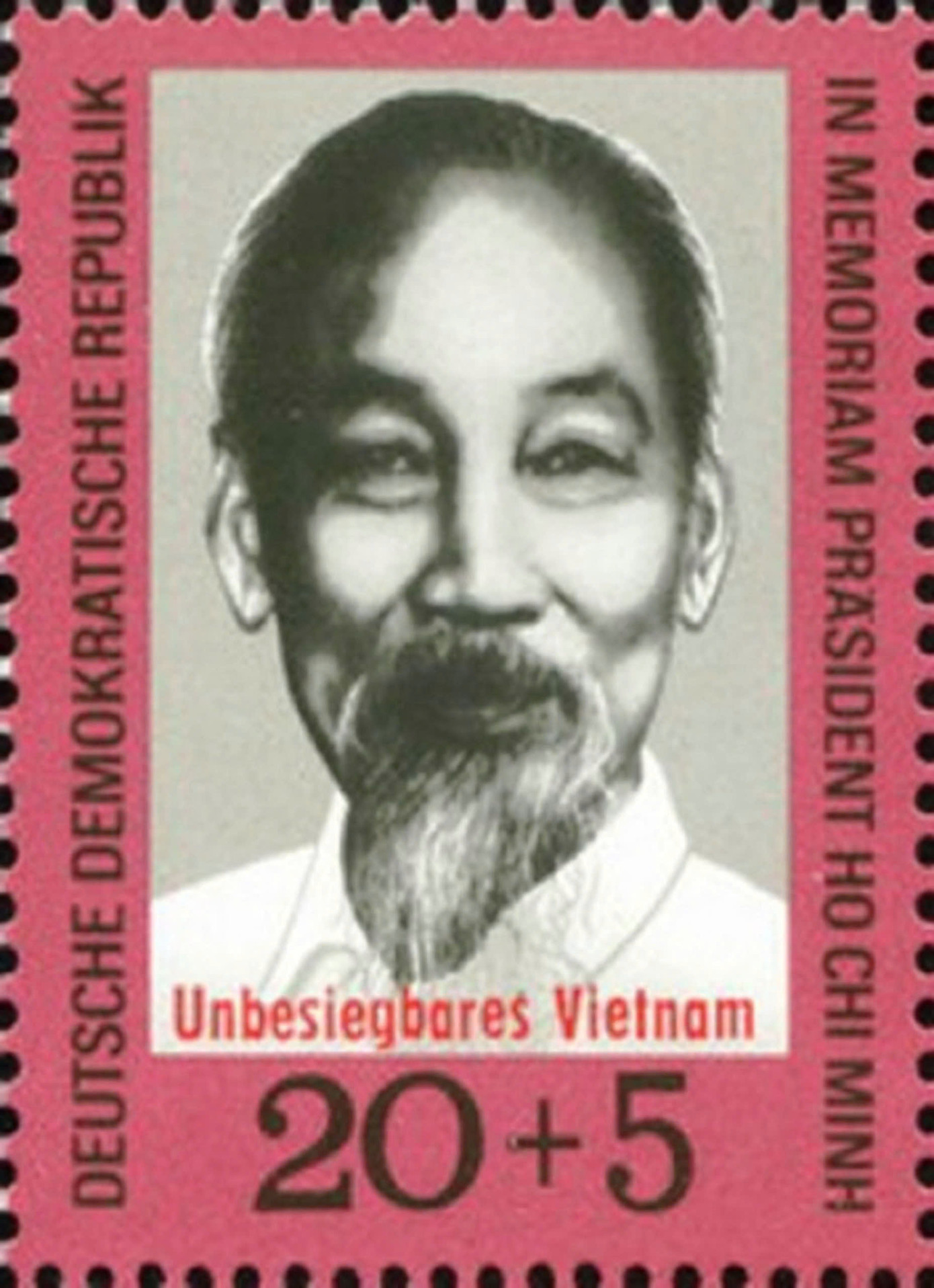 Đáng lưu ý, vào dịp kỷ niệm 25 năm Quốc khánh 2-9 và 1 năm ngày mất của Chủ tịch Hồ Chí Minh, năm 1970 Cộng hòa Dân chủ Đức cho phát hành bộ tem “Việt Nam bất khả chiến bại”. Mẫu tem thể hiện chân dung Bác Hồ với dòng chữ tiếng Đức “Tưởng nhớ Chủ tịch Hồ Chí Minh” và câu “Việt Nam bất khả chiến bại”.