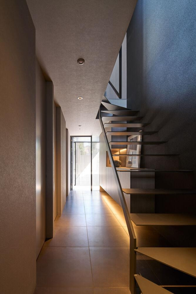 Các khu vực cần sự riêng tư như phòng ngủ được bố trí ở tầng trệt. Nội thất lấy màu nâu trầm làm tông chủ đạo.