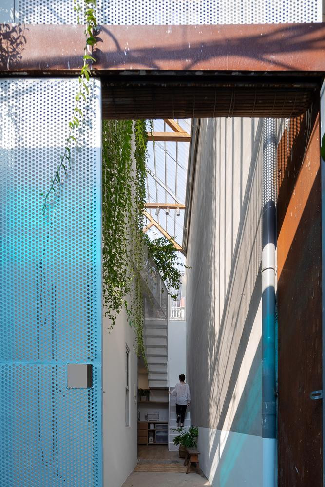 | Vì ngân sách cho việc cải tạo không quá nhiều nên kiến trúc sư đưa ra hướng tiếp cận không gian từ hẻm vào trong nhà thông qua hành lang nhỏ, đây cũng chính là khoảng đệm thông gió cho ngôi nhà khi bị kẹp bởi các nhà ống xung quanh. |
