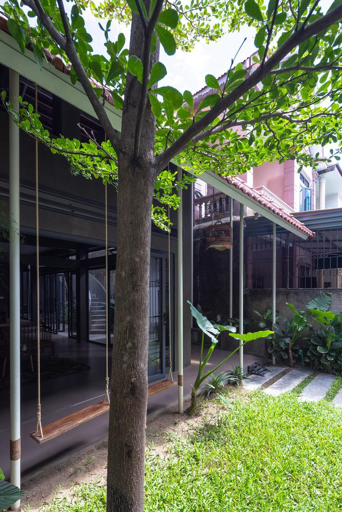 | | Đồng thời, hệ thống mái ngói còn làm tăng tính bền vững cho công trình trước tác động của khí hậu khắc nghiệt của miền Trung Việt Nam. |  | | Các kiến trúc sư tin rằng, ngôi nhà này không chỉ là nơi để ở mà còn là chốn bình yên, mộc mạc, nơi hai mẹ con gia chủ có thể tìm thấy hồn quê giữa trung tâm thành phố nhộn nhịp. |  | | Không gian sống và nội thất được tối giản hoàn toàn giúp con người có thể cảm nhận thiên nhiên một cách trọn vẹn nhất. | |