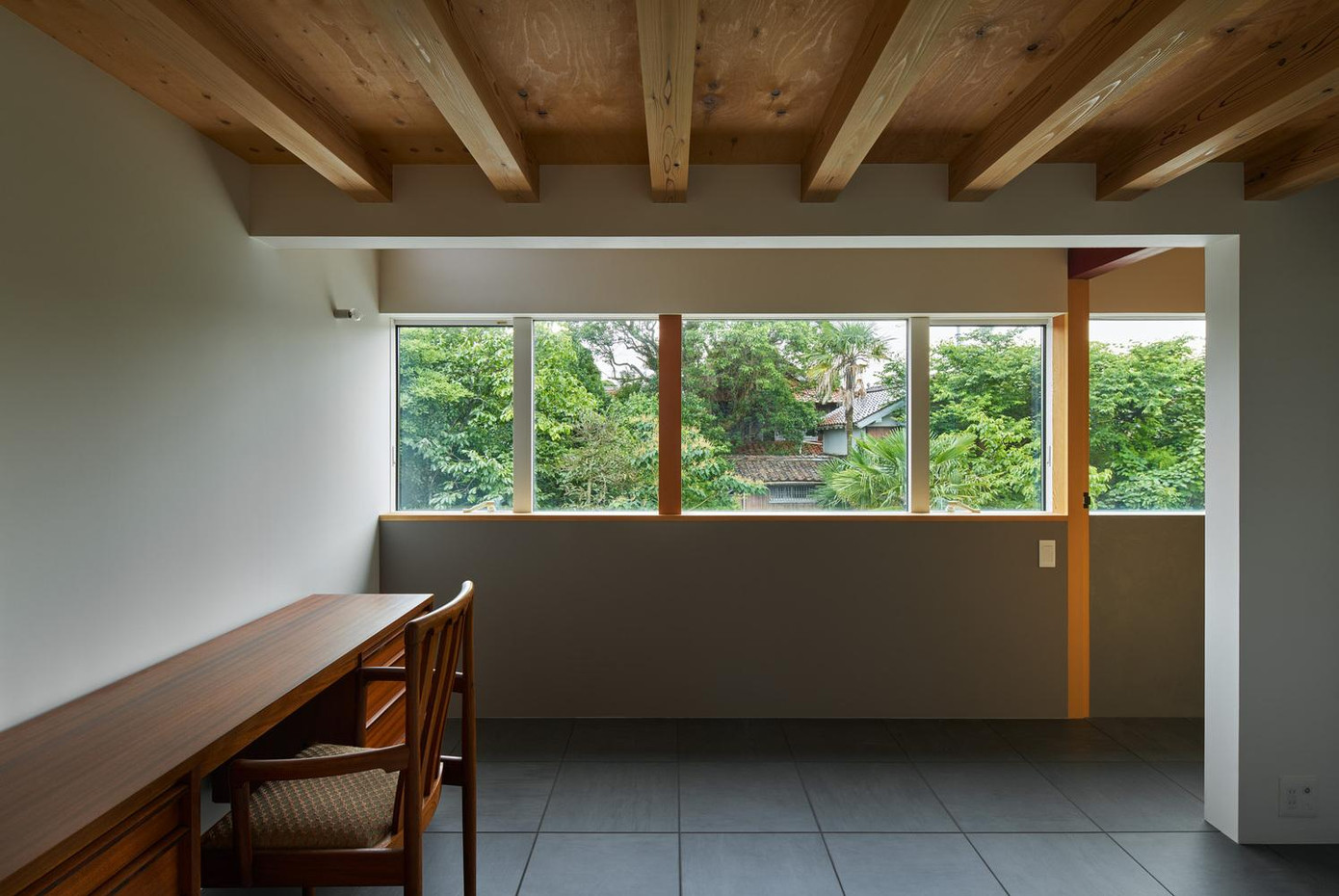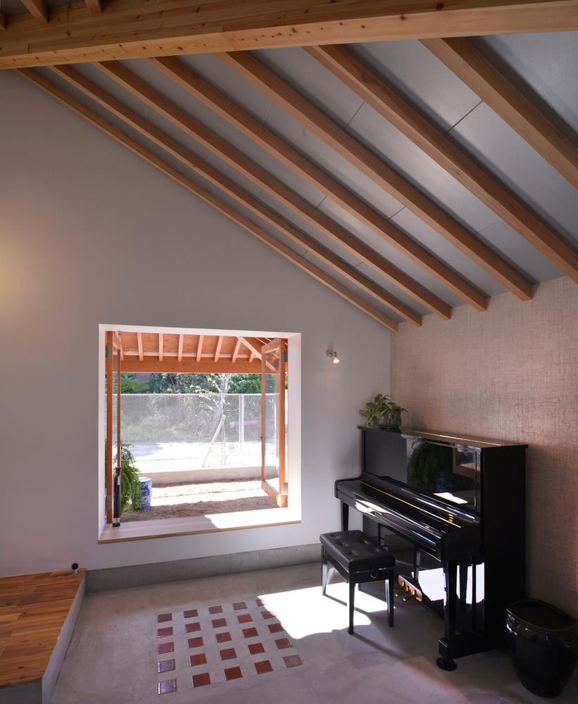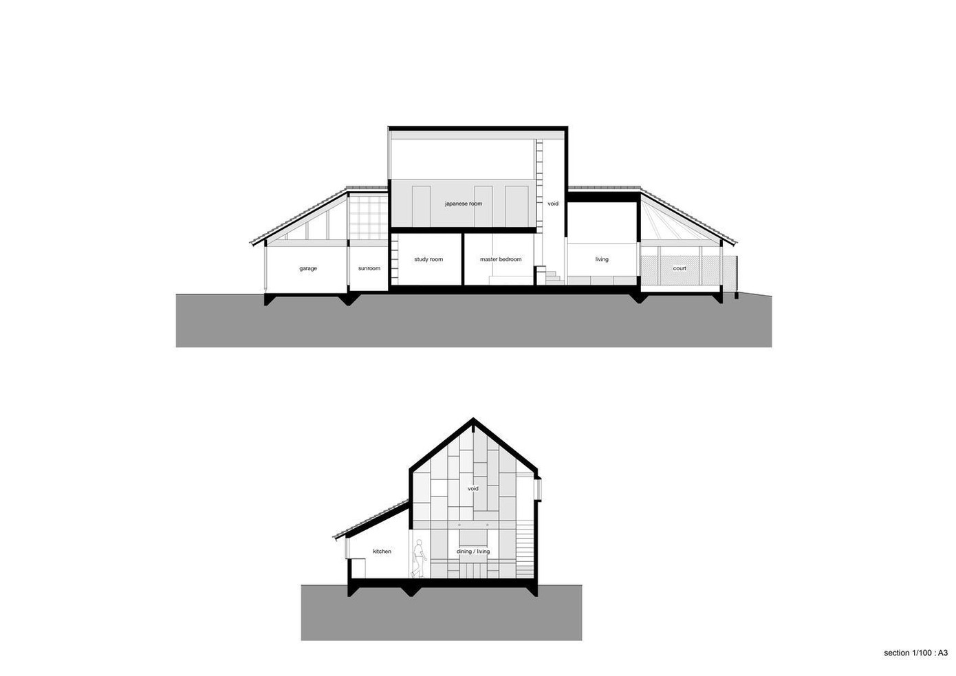 | Ngôi nhà này là nơi sinh sống của một cặp vợ chồng già nên cuộc sống của họ chỉ gói gọn ở tầng một, với phòng ngủ ở trung tâm của ngôi nhà. Tuy nhiên, đây còn là nơi tụ tập của các con vào dịp cuối tuần mỗi khi về thăm bố mẹ nên kiến trúc sư đề xuất xây một ngôi nhà cấp 4 có phần lõi 2 tầng. |