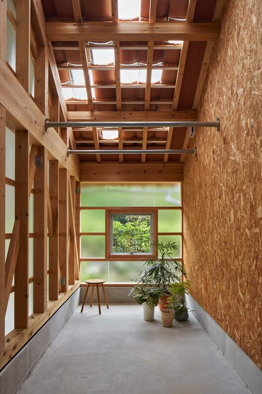 | Lối vào nhà hàng ngày thông qua nhà để xe ở đầu phía đông và phòng tắm nắng, cũng là nơi chắn gió và khu vực phơi đồ. |