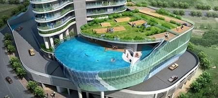 | Các ban công được thay thế bằng bể bơi. |