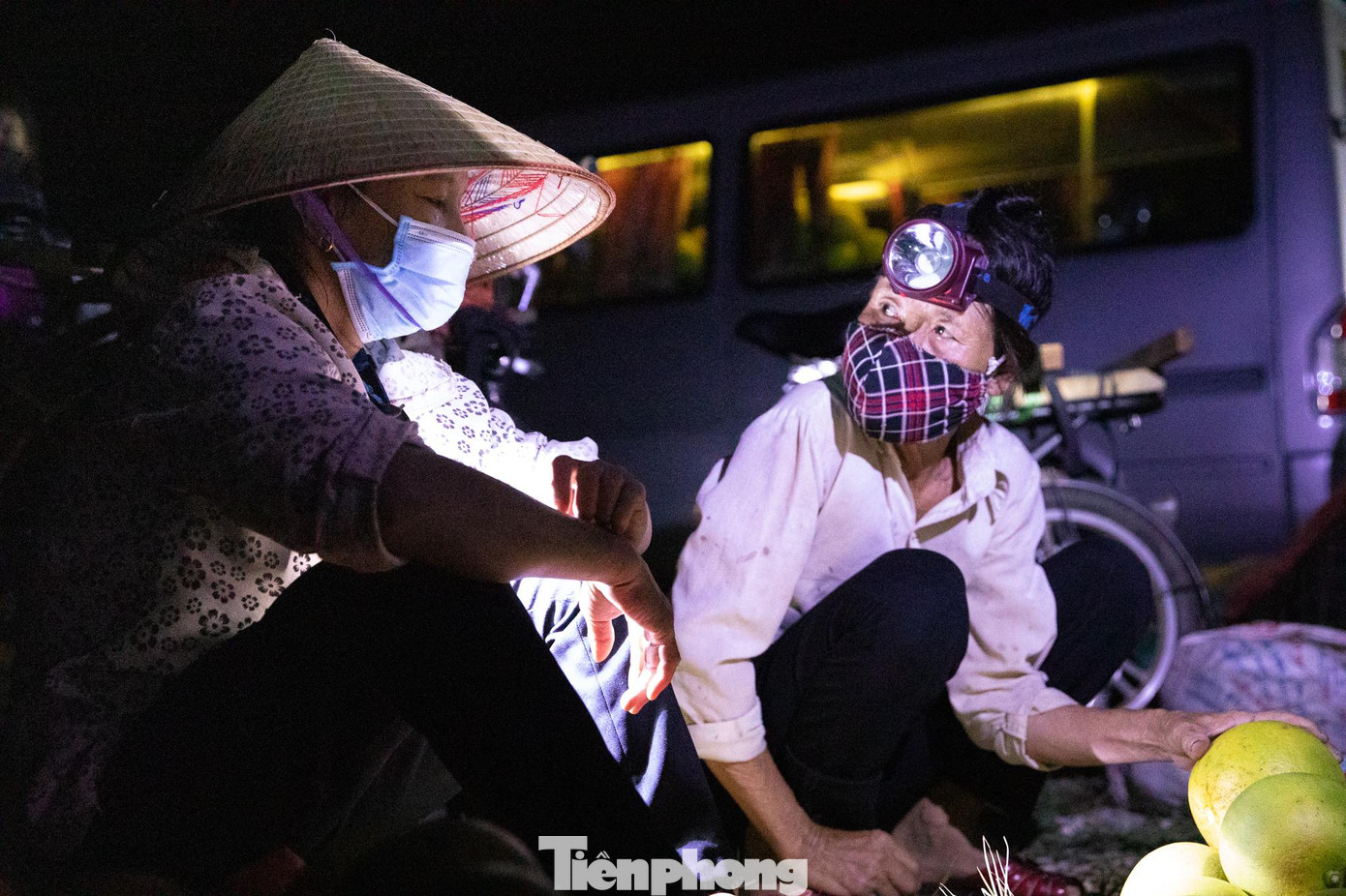 Những người buôn bán tại chợ bưởi đêm đa phần đã được tiêm hai mũi vắcxin. Họ đều mang khẩu trang để phòng chống dịch.