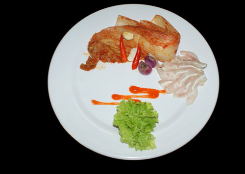 Kim chi muối và tai heo với vị chua, ngọt, ăn giòn sẽ là món hấp dẫn trong dịp Tết. Ảnh: Rosa.