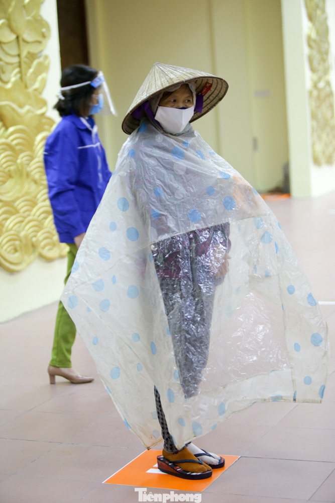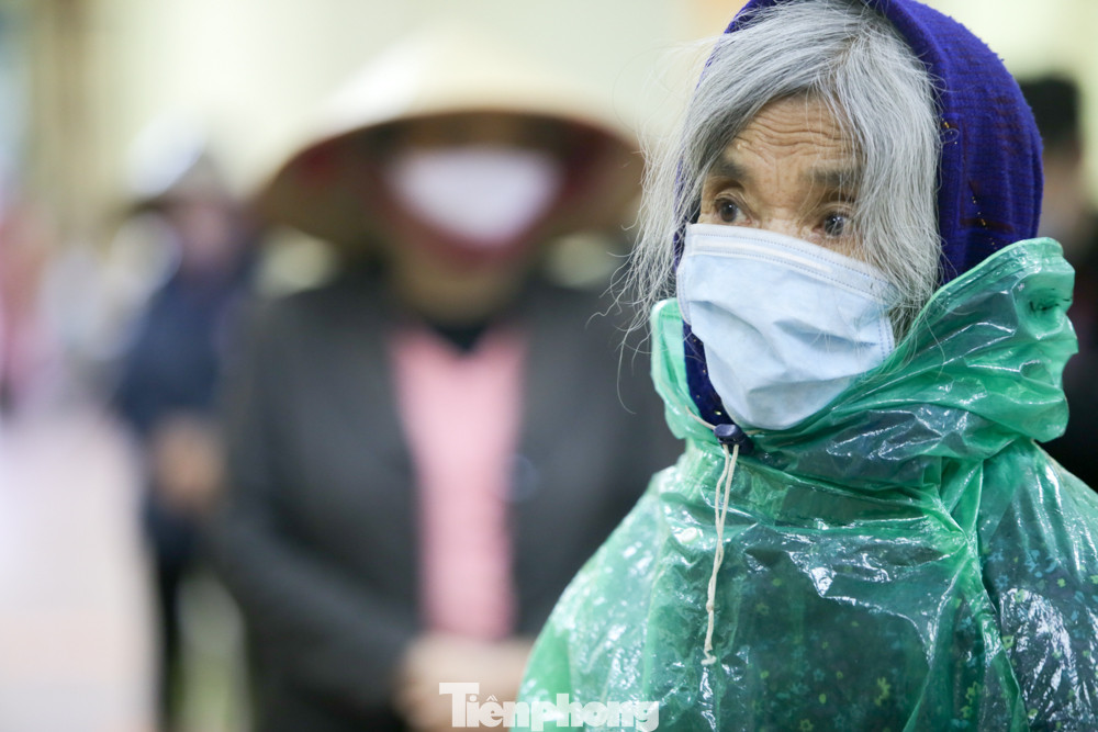 Đội mưa gió rét, người dân vẫn kiên nhẫn xếp hàng lần lượt, đảm bảo khoảng cách an toàn trong công tác phòng chống dịch bệnh.