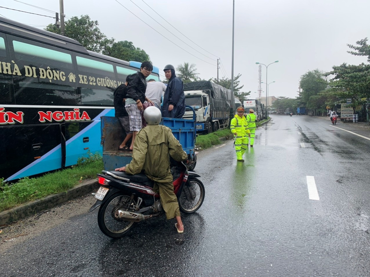 Từ rạng sáng 28/10, hàng nghìn phương tiện và hành khách, tài xế đã bị kẹt lại trên tuyến Quốc lộ 1 đoạn qua thị trấn Lăng Cô, do thực hiện hạn chế người, phương tiện đi vào vùng có bão lớn ở Đà Nẵng, Quảng Nam, Quảng Ngãi…