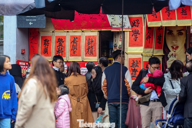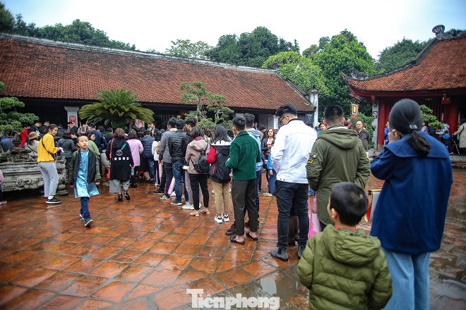 Mặc cho trời mưa lạnh, lượng người đến xin chữ khá đông khiến bên trong Văn Miếu luôn trong tình trạng quá tải.