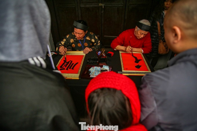 Việc xin chữ trở thành món ăn tinh thần không thể thiếu của nhiều người dân. Vì vậy, nhiều người vẫn chấp nhận đợi cả tiếng đồng hồ để xin được chữ.