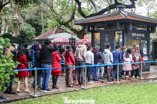 Mặc cho trời mưa lạnh, nườm nượp người đổ về Văn Miếu - Quốc Tử Giám trong ngày đầu tiên của năm mới Canh Tý 2020. Giá vé cho người lớn ở đây là 30.000đ/vé, đối với người già, sinh viên, trẻ em là 15.000đ/vé.