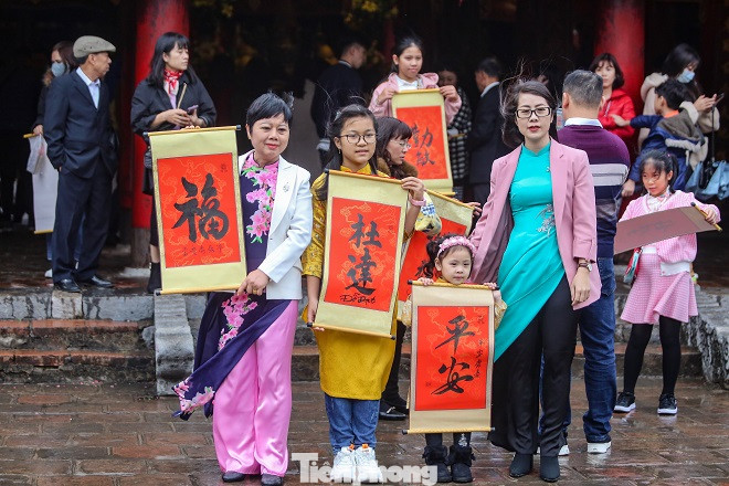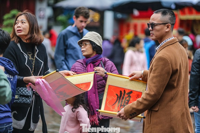 Đội mưa, xếp hàng xin chữ đầu năm ở Văn Miếu ảnh 15