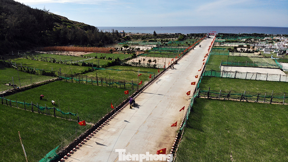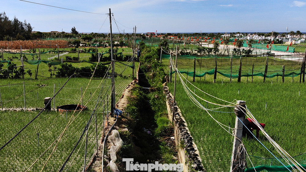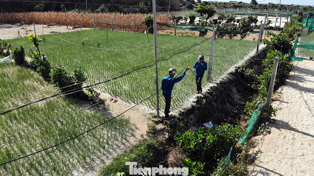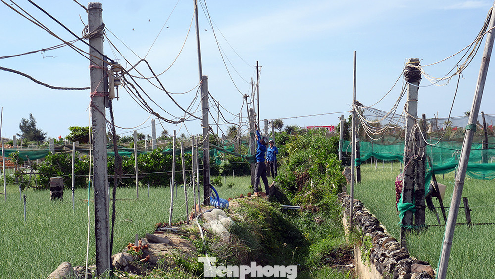 Đường dây cáp quang băng qua những ruộng hành, tỏi của Lý Sơn.