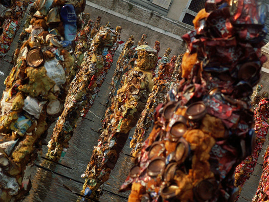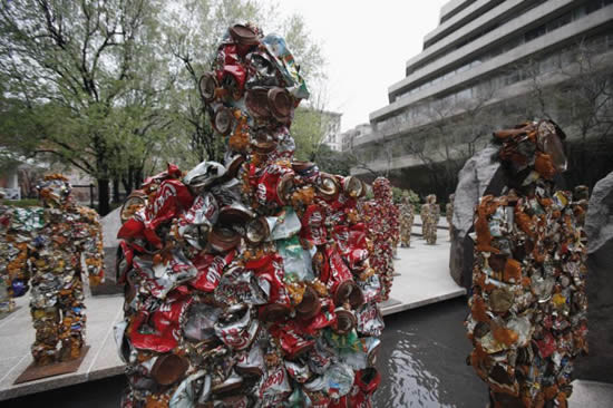 Hơn 1.000 chiến binh rác này được tạo ra từ hàng tấn rác thải mà con người thải ra hàng ngày, bao gồm cả volon coca và các loại rác điện tử.