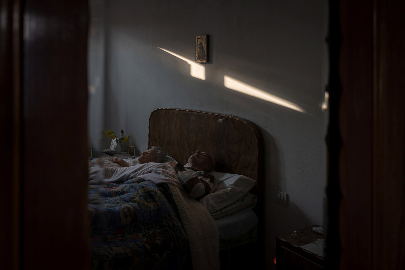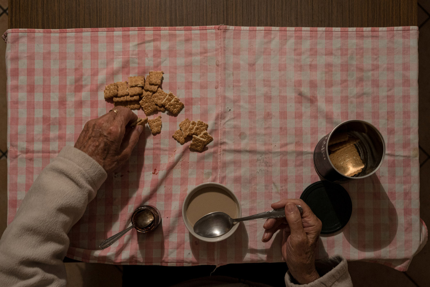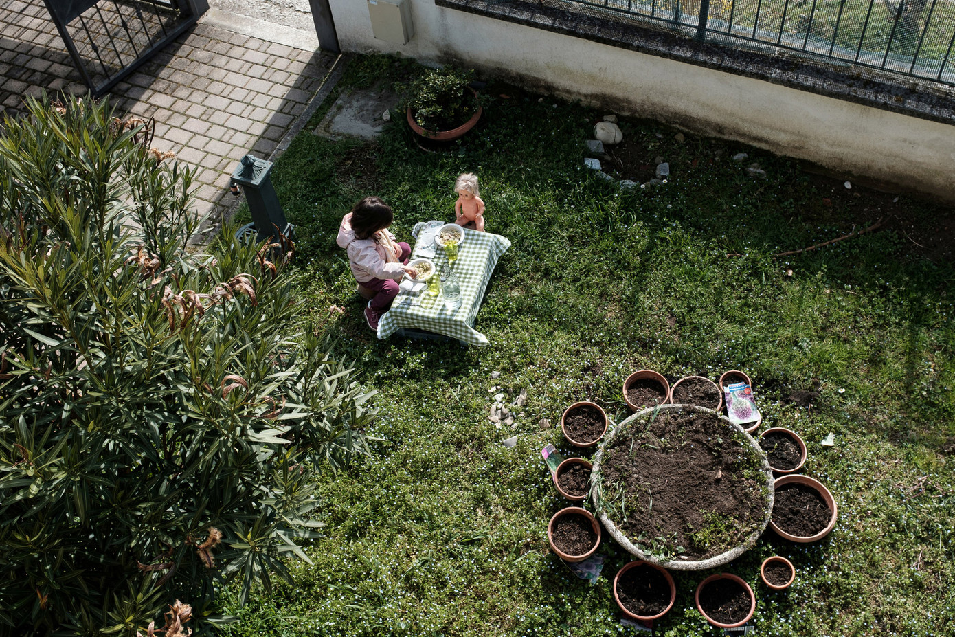 Thầy giáo Toniolo đã chụp ảnh, quay video về đời sống thường nhật của gia đình mình và gửi cho Reuters. Anh sống cùng vợ Chiara, con gái Bianca, bà Ines và ông Gino.