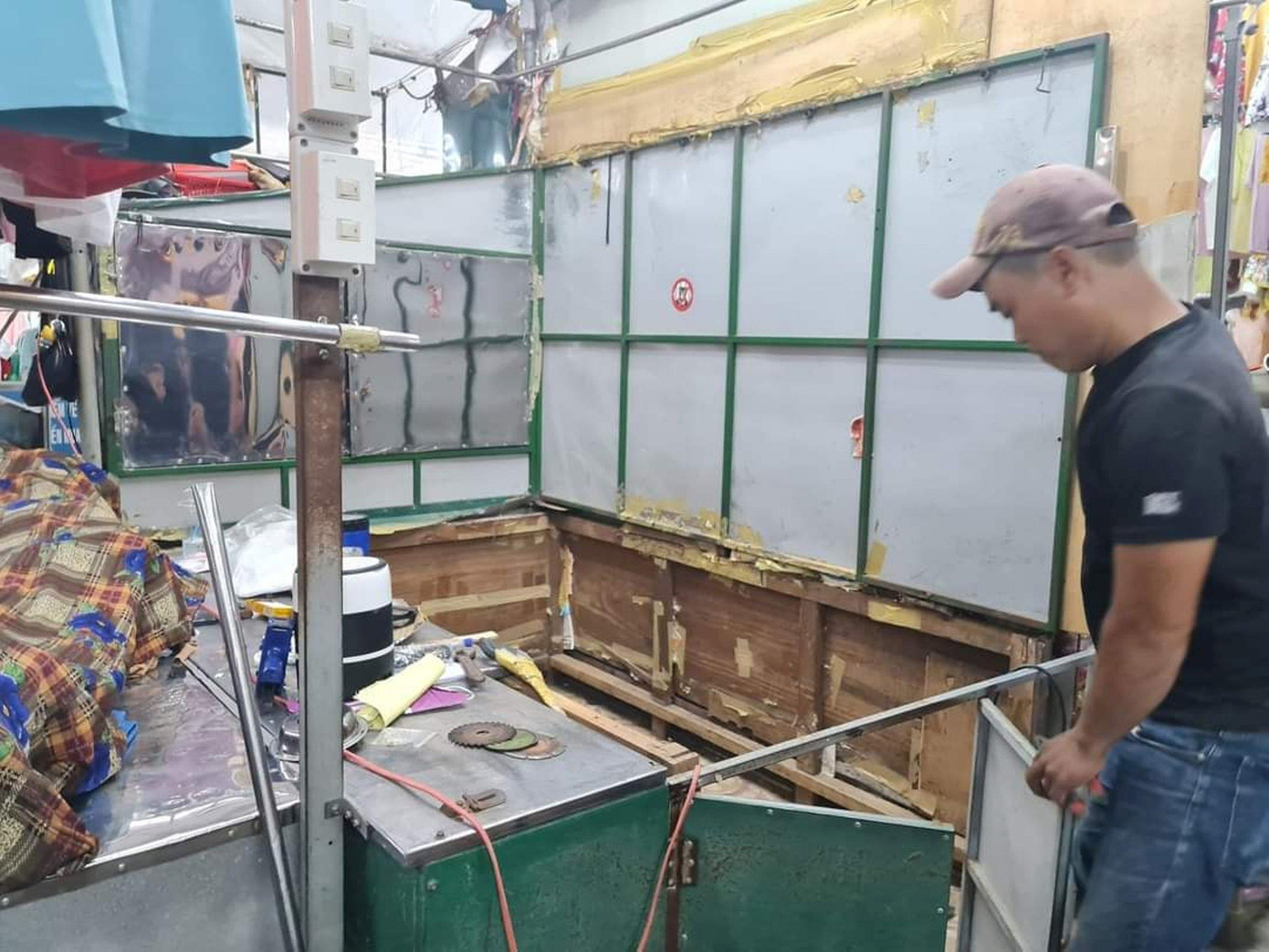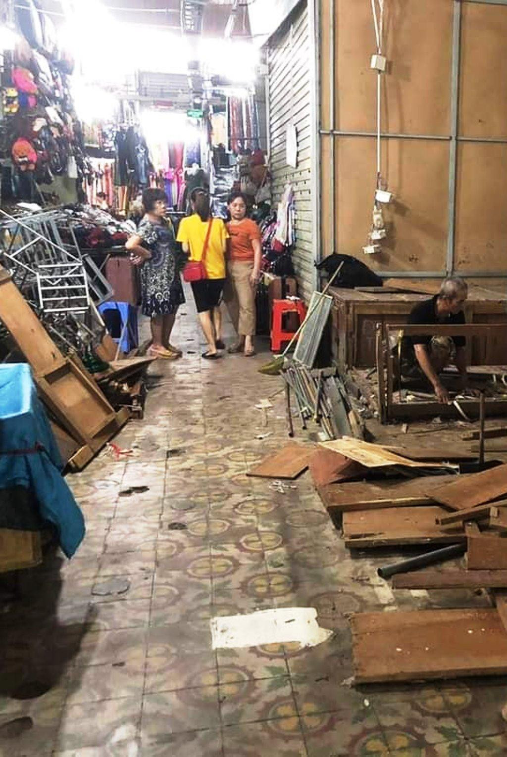 | Cưa cắt, xử lý các vị trí lô quầy cơi nới lấn chiếm bên trong chợ Đông Ba. Ảnh: P.T.Đ |
