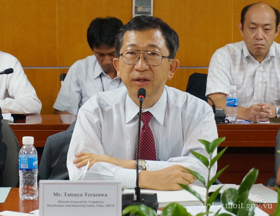 Kiến nghị về lĩnh vực phân phối và logistics tại Việt Nam, ông Tetsuya Terazawa, Vụ trưởng Vụ Chính sách Thương mại, Phân phối và An toàn công nghiệp, Bộ Kinh tế, Thương mại và Công nghiệp Nhật Bản chia sẻ, doanh nghiệp Nhật Bản mong muốn được đầu tư phát triển tại Việt Nam, cung cấp các sản phẩm an toàn, giúp người tiêu dùng yên tâm hơn, đồng thời đóng góp cho xã hội và cộng đồng.