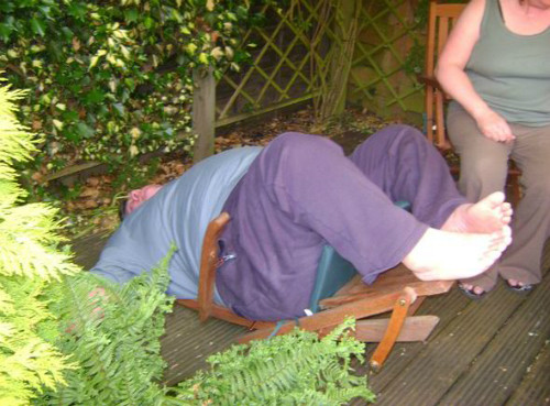 Chris đã làm gẫy chiếc ghế gỗ vì quá béo. Ảnh: Express.