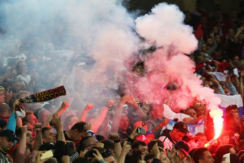 Họ gây hấn với các cổ động viên Anh trong trận đấu diễn ra tại Marseille, khiến cho đội tuyển Nga bị phạt “án treo” loại khỏi giải cùng khoản tiền phạt 150.000 euro. Thế nhưng điều ấy không làm thay đổi hành vi của những cổ động viên Nga trên khán đài, khi ở trận gặp Slovakia, người ta bắt gặp cảnh pháo sáng sau khi Denis Glushakov ghi bàn.