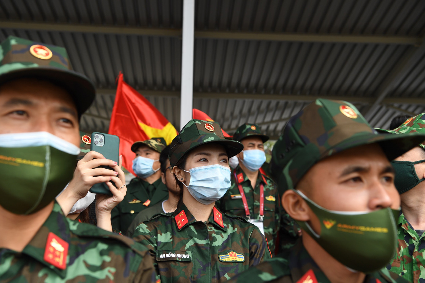 Đồng đội luôn dõi theo, cổ vũ cho đội tuyển xe tăng Việt Nam tại thao trường Alabino ở ngoại ô Moscow (Liên bang Nga). Ảnh: QĐND