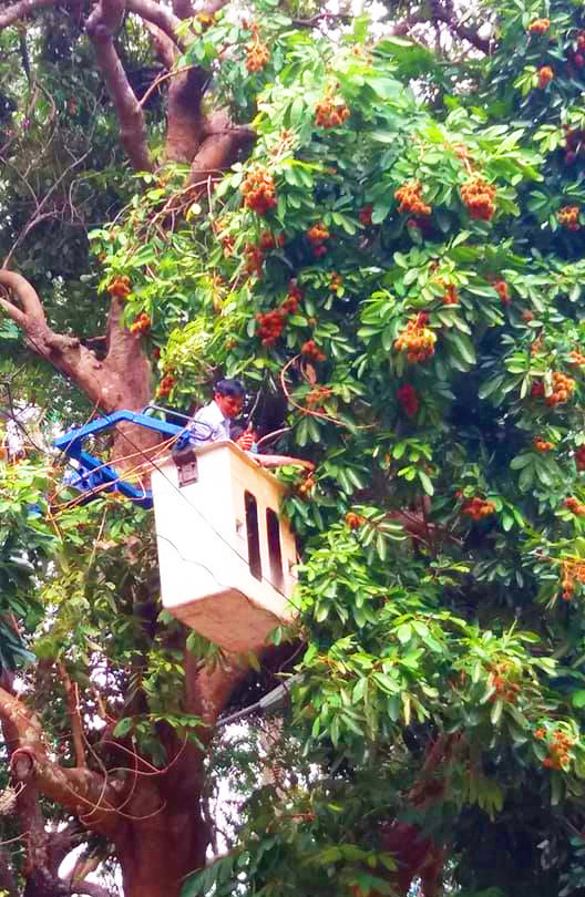 Những người thợ chăm cây nhẹ nhàng gỡ bớt rêu phong, tầm gửi bám trên từng cành cổ thụ trong khuôn viên Bảo tàng