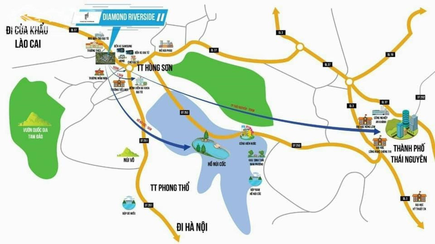Một trong những yếu tố thu hút các nhà đầu tư đến với Đại Từ là dự án Diamond Riverside Đại Từ.