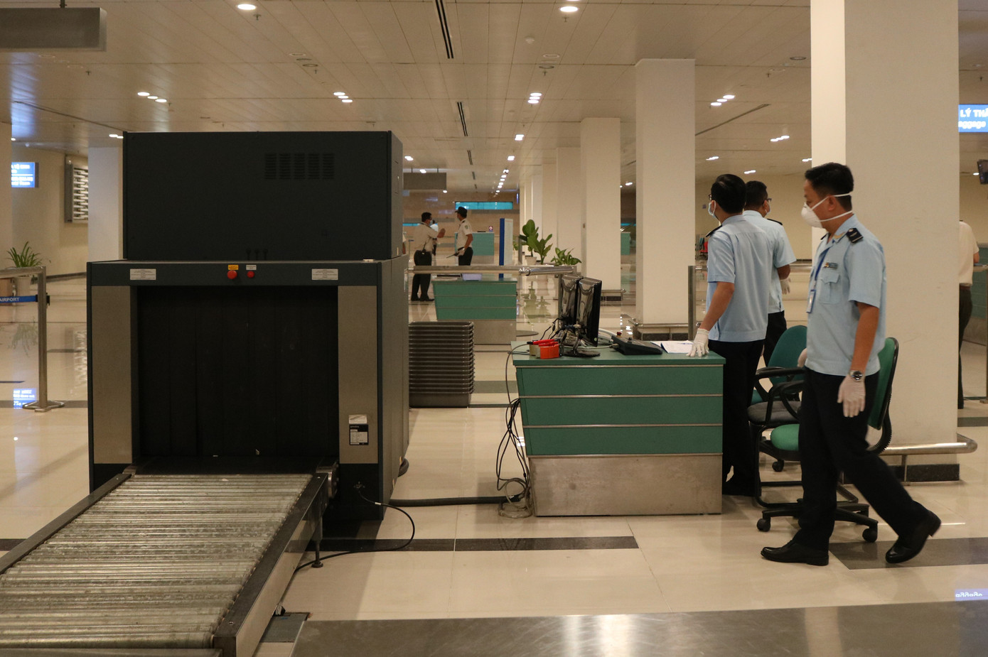 Lực lượng an ninh sân bay và ngành chức năng có mặt sớm để chuẩn bị đón 136 hành khách - Ảnh: Kim Hà.