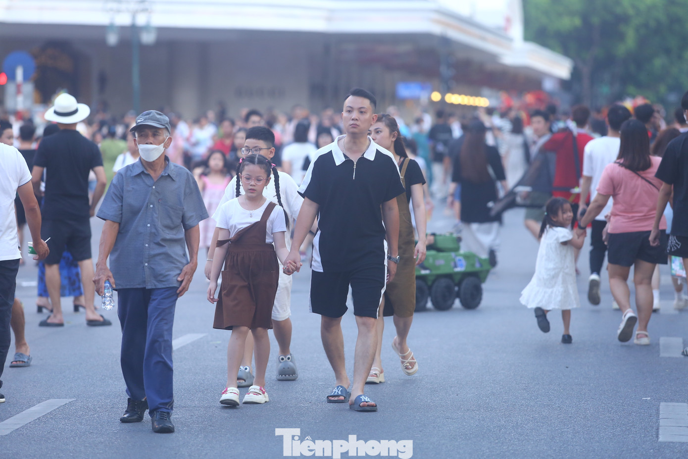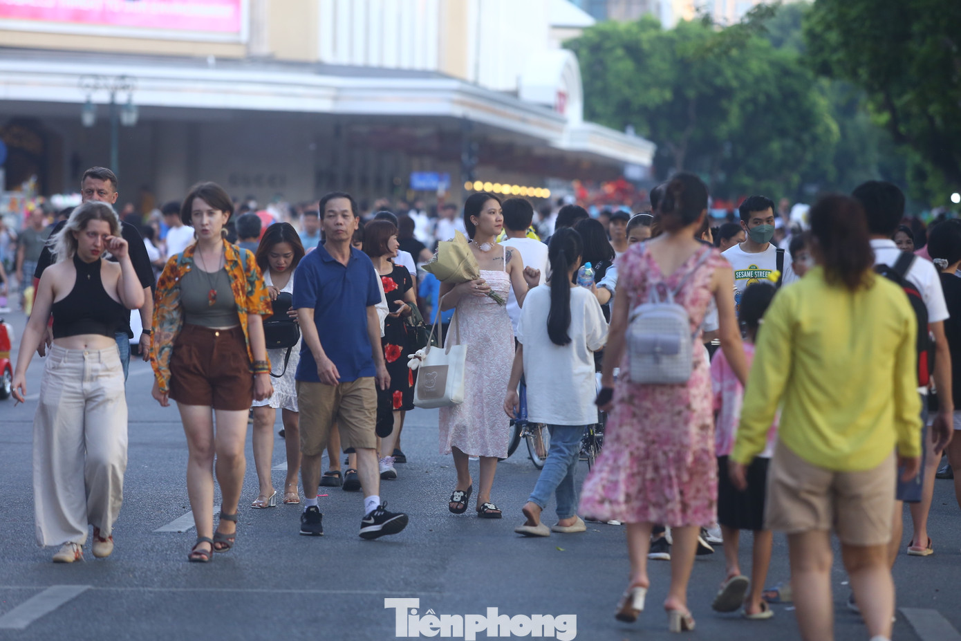 TPO - Sau buổi ngày nắng nóng, chiều tối ngày đầu tiên kỳ nghỉ lễ 2/9, nhiều người dân tới phố đi bộ Hồ Gươm (Hoàn Kiếm, Hà Nội) để vui chơi, thư giãn.