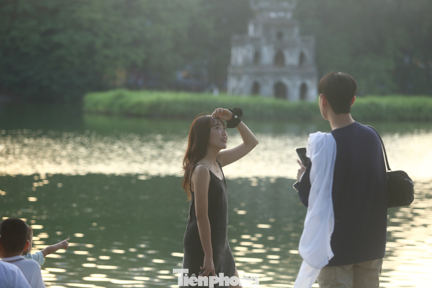 | Thời tiết tại Hà Nội mát mẻ vào chiều tối khiến chuyến vui chơi trên khu vực hồ Hoàn Kiếm vui vẻ và thoải mái hơn. |