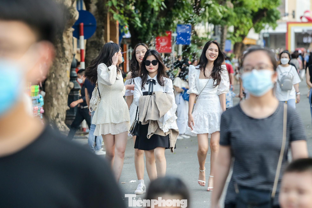 | Theo ghi nhận của PV, phố đi bộ hồ Gươm đón một lượng lớn khách trong và ngoài nước đến tham quan, du lịch, các con phố xung quanh hồ trở nên đông đúc từ sáng đến tối. |