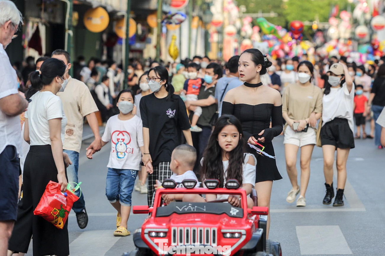 | Rất đông trẻ em được gia đình đưa lên phố đi bộ trong dịp nghỉ lễ này. |