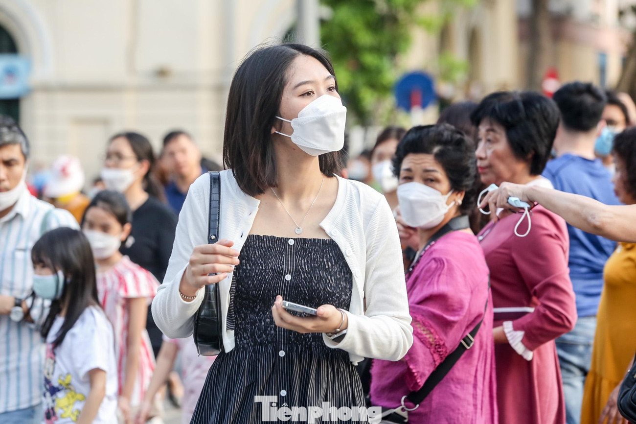 | Khu vực phố Tràng Tiền được "lấp đầy" bởi du khách. |