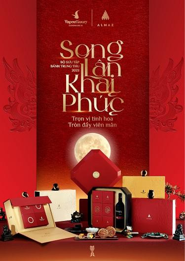 Năm nay, Trung tâm ẩm thực và hội nghị đẳng cấp quốc tế Almaz (Hà Nội) và khách sạn Vinpearl Luxury Landmark 81 (TP.HCM) mang đến dòng bánh trung thu cao cấp “Song Lân Khai Phúc” lấy cảm hứng từ hình ảnh Song Lân trước điện Thái Hòa – Cung đình Huế. Hình tượng Song Lân ôm lấy hai quả châu biểu trưng cho cuộc sống bình yên và hạnh phúc được bảo vệ vẹn toàn; đồng thời gửi gắm mong ước về một tương lai thịnh vượng, tròn đầy phú quý sẽ đến với vạn nhà trong “mùa trăng an nhiên”.