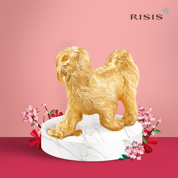 Tượng chó Phúc lộc mạ vàng hồng là hình ảnh chú chó sục Tây Tạng Tibetan Terrie - một trong những giống chó quý biểu trưng cho may mắn ngập tràn. Chú chó dẫm chân lên cây trượng như ý, ngụ ý dẫn dắt chủ nhân đến con đường thành công, biến mọi điều ước thành hiện thực. Bộ sưu tập gói trọn tâm huyết thay lời chúc mừng năm mới của RISIS. Mỗi bức tượng là món quà may mắn, cầu chúc cho người nhận có được cuộc sống viên mãn, hay thể hiện sự cảm kích dành cho những người mà bạn trân quý